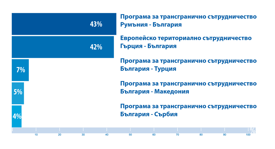 Одобрените заеми по Програмите за Трансгранично сътрудничество 2007 - 2013 г. заемат 8% от общия размер или 80 млн. лв., с които са подкрепени 88 проекта, на обща стойност 142 млн. лв. Фонд ФЛАГ е одобрил 90 кредита, разпределени по програми както следва: